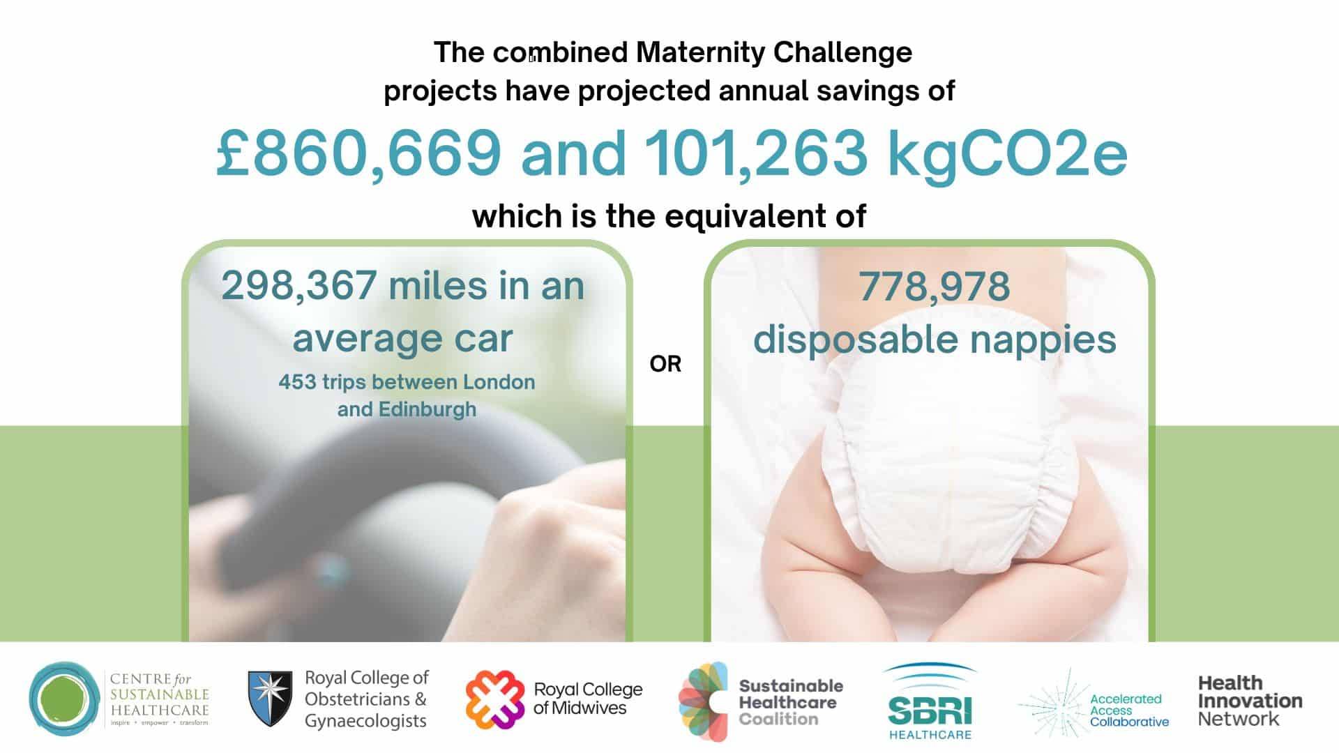 The impact of the Green Maternity Challenge has been significant, with projected annual cost and efficiency savings of £860,669. The projected carbon savings are 101,263 kgCO2e, equivalent to 778,978 disposable nappies. Presentations, videos and reports from the nine projects can be found here.